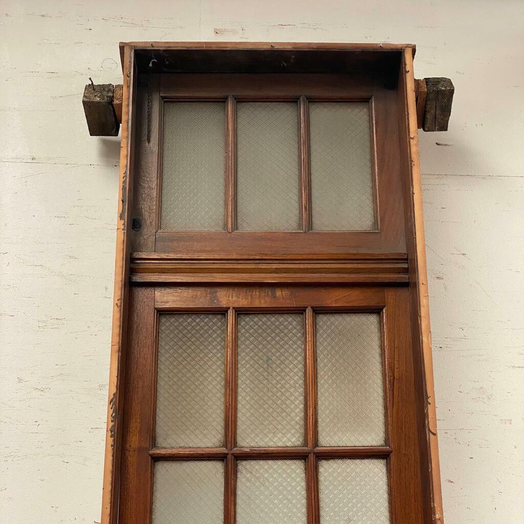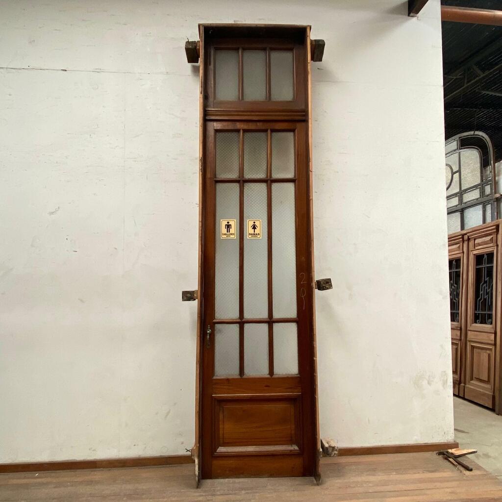 Puerta de una hoja con vidrios repartidos y banderola Cedro - Cod: 6773